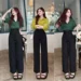 Quần ống rộng nữ cạp cao đi học làm chơi du lịch biển dáng dài quần tây ống rộng nữ lưng cao 1 khuy vải đen dày đáy ca